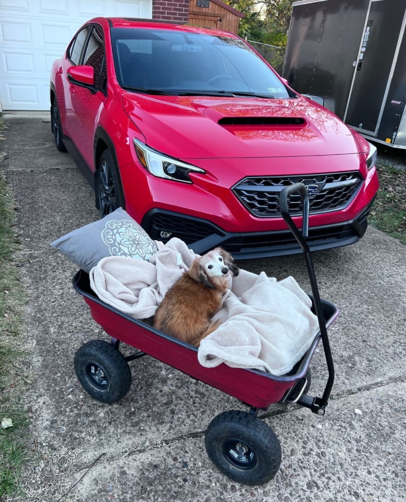 Lilly, a long-haired miniature dachshund, came to me as an unexpected “gift” when I was 19 years old. She was only a few weeks old and barely bigger than the palm of my hand. At the time I was in business school and working full time to survive, but I fell in love instantly. During the time I was attending and completing business school, my dad, my grandmother, and I collectively took care of Lilly. Lilly has been on numerous trips, vacations, and additional whereabouts with me. During the last 15 years, I have rescued and adopted EIGHT other dogs and lived in several different places with Lilly accepting and loving all her doggie “siblings”. Lilly, along with Lala and Peter, are all that remains of my original pack of nine. Six have passed over the years and are dearly missed. July 3rd , 2022, Lilly celebrated her “sweet 16”! She received a red “car” – just like her mommy’s! Lilly has done and continues to do remarkably well. After enduring some difficult times including emergency surgery from IVDD, she still can do everything she wants. She is loved and cared for with every ounce of love in my heart and continues to be the absolute love of my LIFE.