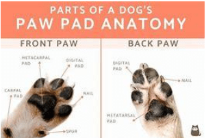 A dog’s paw pad is made up of fat, connective tissue, and collagen. The pads consist of thick, tough skin designed to protect a dog’s feet. The underside of a dog’s paws has pads that cushion their feet and provide traction. There are usually four main pads on the bottom of the paw – one large central pad called the metacarpal or metatarsal pad, and three smaller digital pads, one for each toe. The pads are rough and textured, which helps grip different surfaces as a dog walks. In between the pads are grooves that allow flexibility and promote better traction. While the pad is mostly hairless, some breeds have small tufts of fur between the pads or on the top of the feet. The thick pad allows a dog to walk on rough or hot surfaces like concrete, gravel, snow, or asphalt.